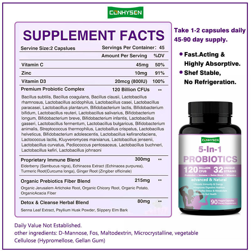 Kapsul Prebiotik 5-In-1 Label Pribadi Mendukung Detoksifikasi dan Metabolisme Suplemen Probiotik