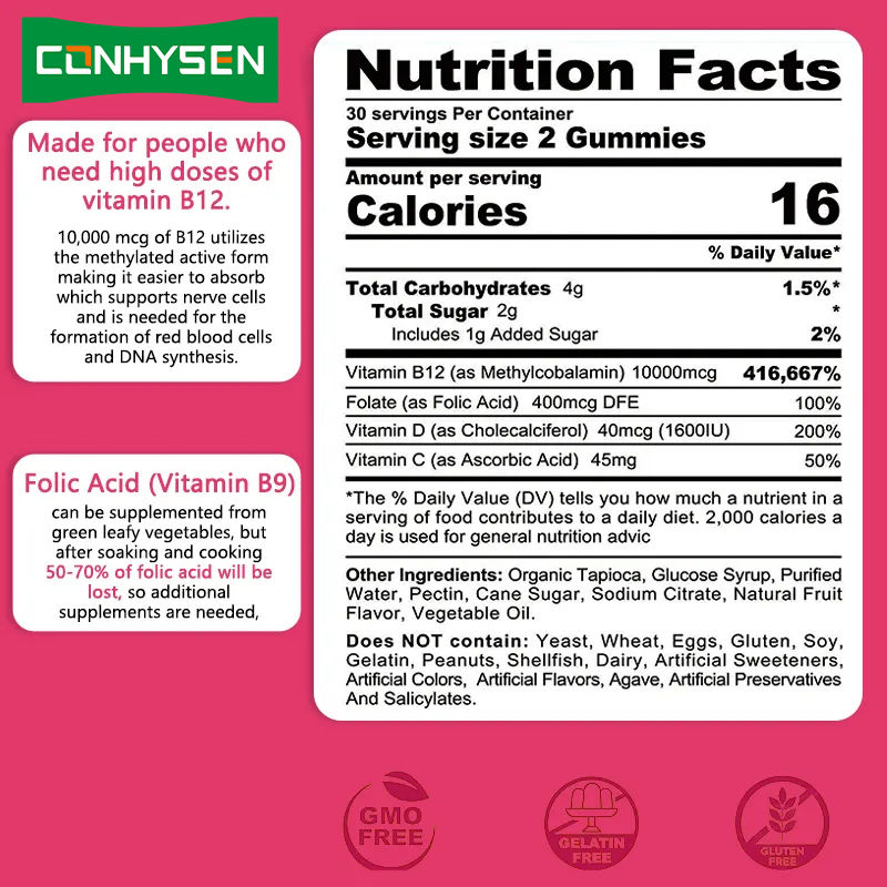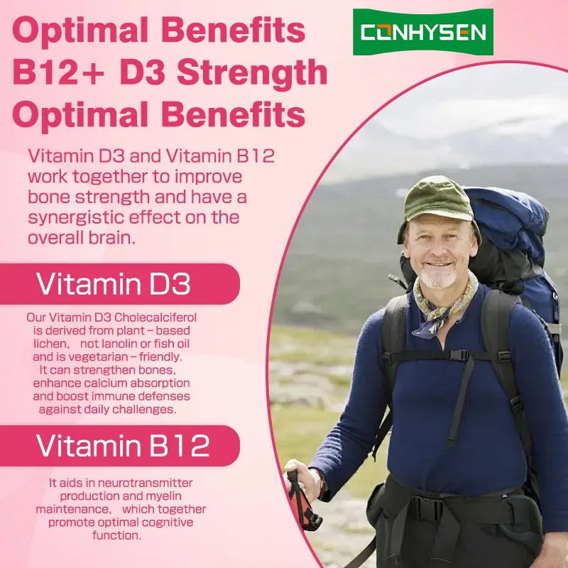 OEM ODM Permen Vitamin B12 Dengan Vitamin C D Folat Suplemen Herbal Meningkatkan Kesehatan Tulang