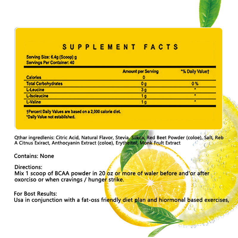 Bubuk BCAA adalah produk pelindung otot penting bagi penggemar kebugaran dan atlet. Rasio emas asam amino rantai cabang (terdiri dari leucine, isoleucine, dan valine) ini dapat dengan cepat diserap dan dimanfaatkan oleh otot, secara efektif mengurangi kerusakan otot selama latihan dan mempercepat perbaikan otot setelah latihan.