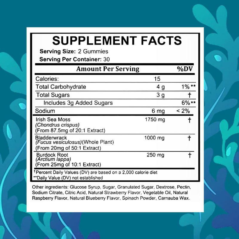 Sea Moss Gummies dengan Burdock Root Wholesale Custom Support Berat badan menurun