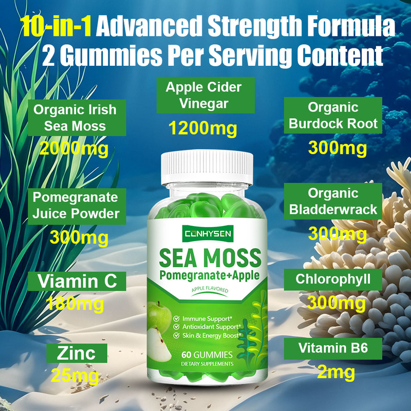 Permen Gummy Lumut Laut Apel Delima Mendukung Antioksidan OEM/ODM Kustom