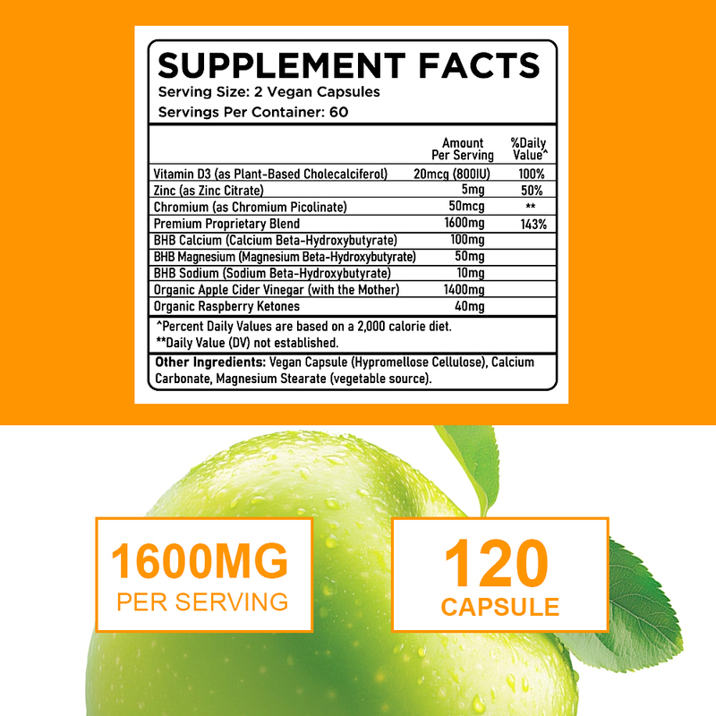 Cuka Sari Apel Organik, Vitamin D3, Seng, Kromium, Campuran Premium Proprietary, BHB Kalsium, BHB Magnesium, BHB Sodium, Ketone Raspberry Organik