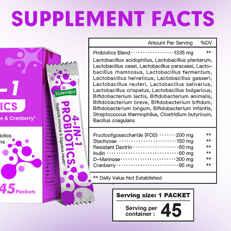 Probiotik Campuran, FOS, Stachyose, Dextrin Resisten, Inulin, D-Mannose, Cranberry