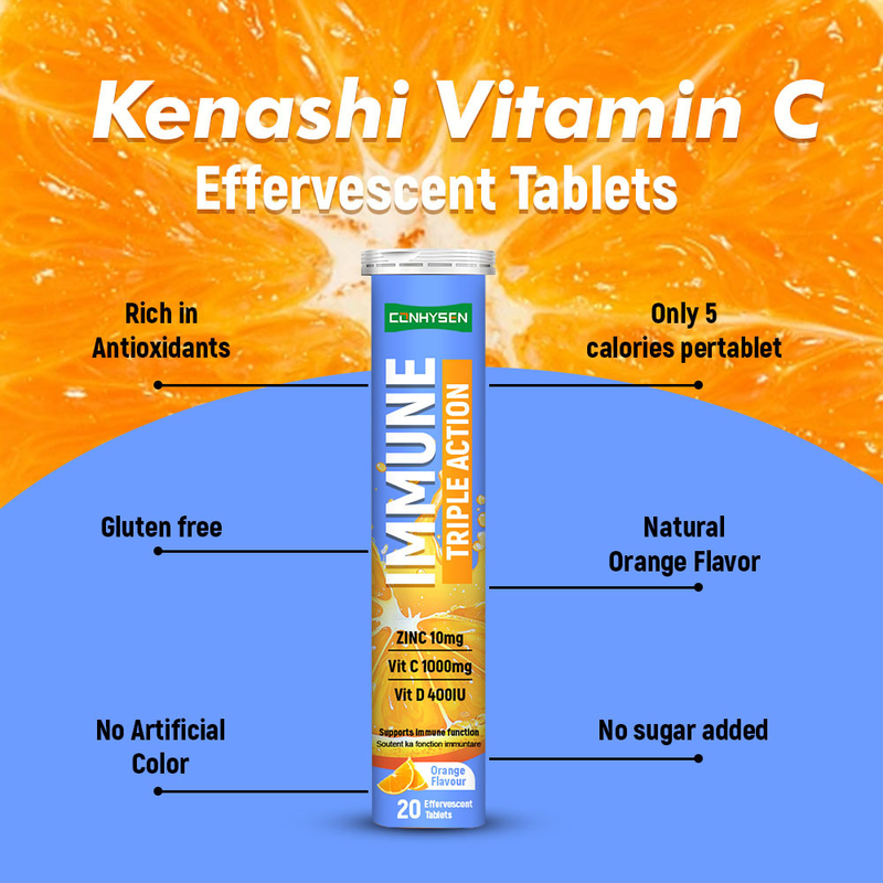 The Immune Effervescent Tablets diluncurkan olehGuangdong Kangsheng Pharmaceutical Technology Co., Ltd.Ini adalah jenis tablet effervescent yang dirancang khusus untuk meningkatkan kekebalan tubuh.dan seng - untuk menyediakan solusi dukungan kekebalan yang nyaman dan efisien untuk orang modernVitamin C, sebagai antioksidan yang kuat, dapat mempromosikan fungsi sel darah putih dan meningkatkan ketahanan tubuh;vitamin D membantu mengatur keseimbangan sistem kekebalan tubuh dan meningkatkan penyerapan kalsium; seng adalah mineral kunci untuk menjaga aktivitas sel kekebalan tubuh. Ketiga elemen bekerja sama, memberikan efek sinergis, dan membantu membangun pertahanan kekebalan yang lebih kuat.