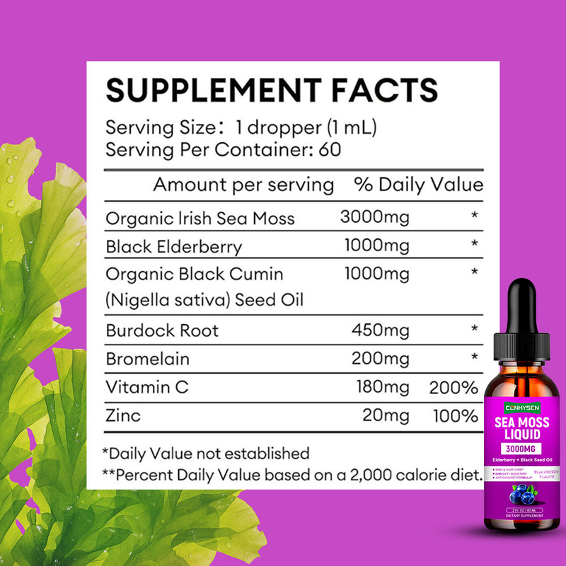Guangdong Kangsheng Pharmaceutical Technology Co., Ltd.telah meluncurkan Sea Moss Liquid Drops, suplemen kesehatan esensi tanaman laut alami. This product is made from high-quality seaweed (algae) from the North Atlantic Ocean as raw materials and uses advanced low-temperature extraction technology to fully retain 92 kinds of minerals and vitamins and other nutrients in the seaweed. produk ini adalah 100% alami dalam komposisi. bentuk cair lebih mudah diserap oleh tubuh manusia.Penggunaan jangka panjang membantu untuk melengkapi mineral laut yang kurang dalam diet harian, mendukung kesehatan tiroid, meningkatkan kekebalan, meningkatkan fungsi usus,dan membantu menjaga elastisitas kulit dan fleksibilitas sendi.