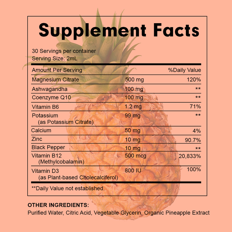 Magnesium Sitrat, Ashwagandha, Koenzim Q10, Vitamin B6, Kalium, Kalsium, Seng, Lada Hitam, Vitamin B12, Vitamin D3